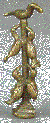 These small brass figurines were used to weigh gold dust, a major trade good and exchange medium. The weights were sometimes styled to portray a proverb, in this case: "Only birds of the same abusua (family or clan) play together on the same tree".