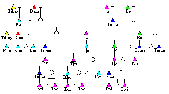 While the double system of classification often involves a reinforcement of ties, it may also create contradictions insofar as two peoples' kin and name relationships can involve different and sometimes opposed sets of obligations. This situation regularly occurs as a consequence of naming third and subsequent sons and daughters after brothers and sisters, which occurs approximately 20% of the time. For example the Bos of the third and fourth generations in the diagram are biologically related as tsu/tsuna (uncle and nephew) but because of their common name are also kuna/kuma. The former is an avoidance relationship, and the latter is a joking one. In this instance there is no specific rule to determine which set of behaviours to follow. Lee suggests that in general the older member of the pair has the descretion to decide which of the two alternatives to follow. Raymond Firth, commenting on a similar situation in the Pacific island of Tikopia, maintains that choices in ambiguous kin term situations are governed by strategic interests such as economic and political gain or sometimes by just a simple desire to reduce confusion (Firth 1930).